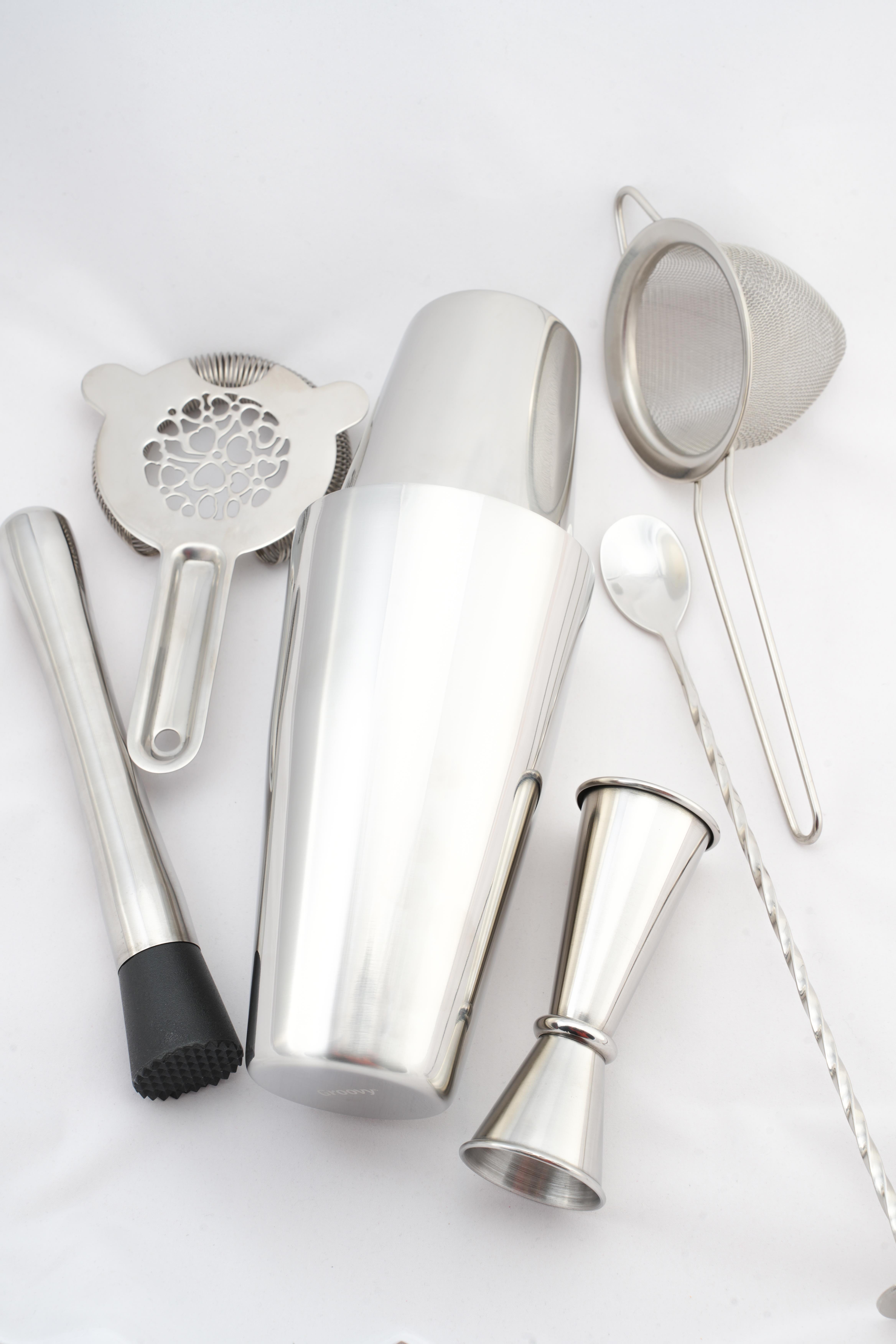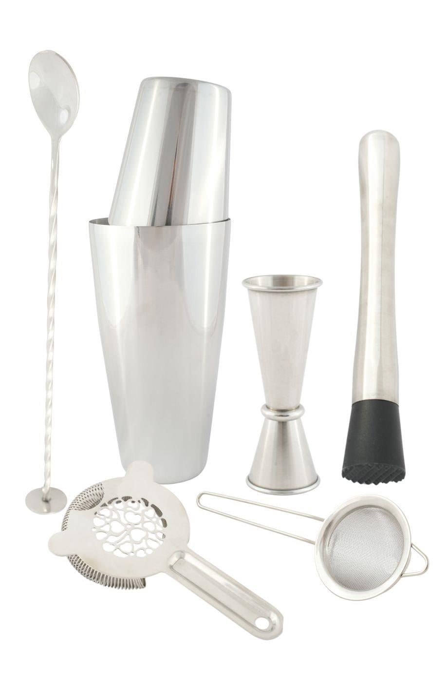 Tin Tin Boston Shaker 750 ml + Jigger 25/50 ml + Hawthorne Süzgeç + Ezici + İnce Kokteyl Süzgeci + Burgulu Bar Kaşığı