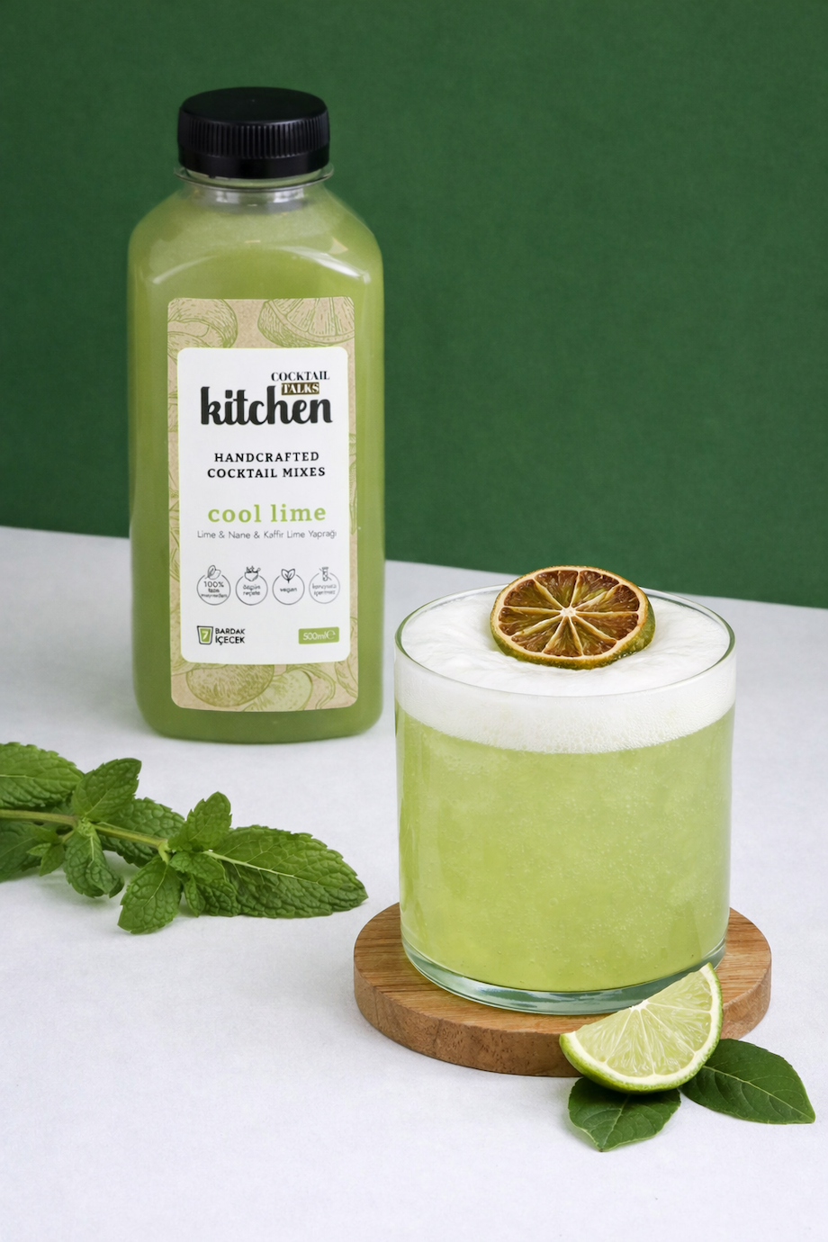 Cool Lime; lime, nane kaffir lime yaprağı bileşimli donuk kokteyl karışımı olarak hızlı uygulama ve net sunum sağlar.