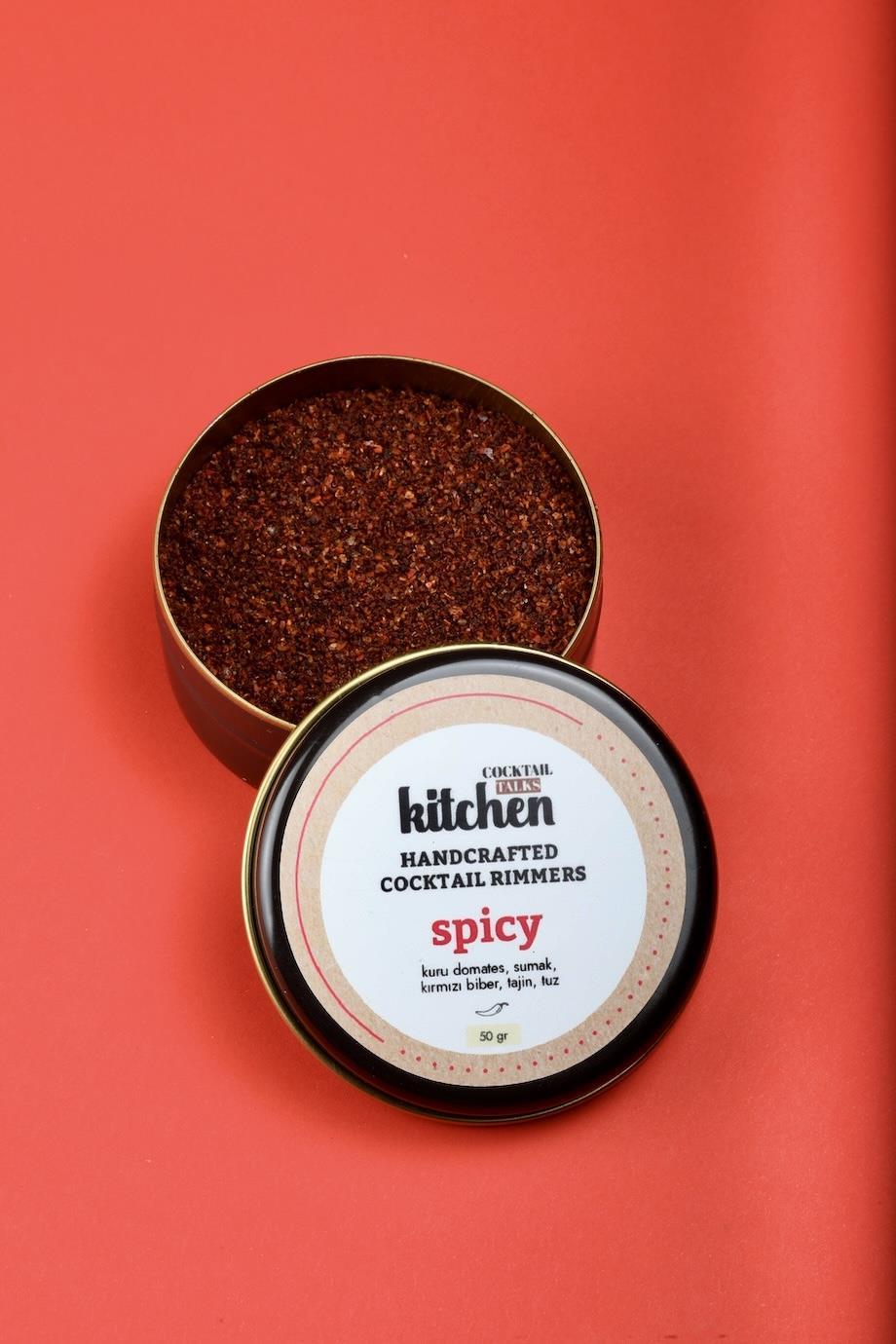 • Spicy Rimmer: Kuru domates, sumak, kırmızı biber ve Tajin bileşimiyle hazırlanan kokteyl tuzu olup bardak kenarında tutarlı kaplama ve baharatlı bir dokunuş sağlar.